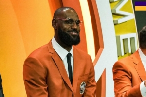 气色不错!湖人官方晒现场照:詹姆斯作为救赎之队成员入选名人堂
