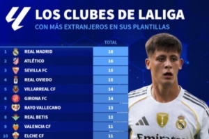 西甲俱乐部外籍球员数量排行:皇马18人最多,毕巴仅3人最少