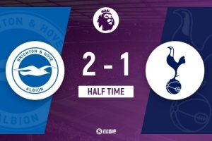 半场-布莱顿2-1热刺 明特单刀破门阿亚里世界波理查利森扳回一球