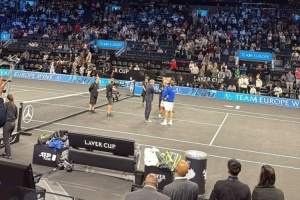 在现场!希尔德在大通中心看阿尔卡拉斯比赛 后者银发造型帅气