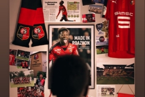 与登贝莱同样出身雷恩青训的卡马文加转发了雷恩的海报祝贺登贝莱获奖。