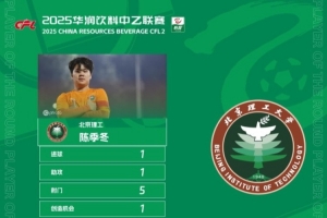 传射建功!官方:北京理工前锋陈季冬获中乙第26轮最佳球员