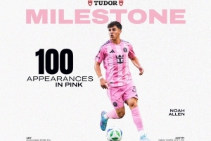 本场比赛,迈阿密后卫阿伦代表球队第100次出战。迈阿密国际官方社媒发布海报向阿伦100场里程碑表示祝贺,并配文写道:艾伦迎来第100场披粉色战袍出场 💗👏