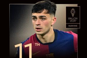 为何佩德里排第11?金球奖投票详情:100名记者只有31人投佩德里