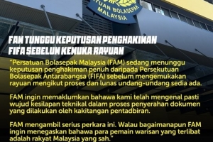 马来西亚足协发表官方声明,表示将在收到国际足联的完整书面裁决后,再根据现有法律程序提出上诉。