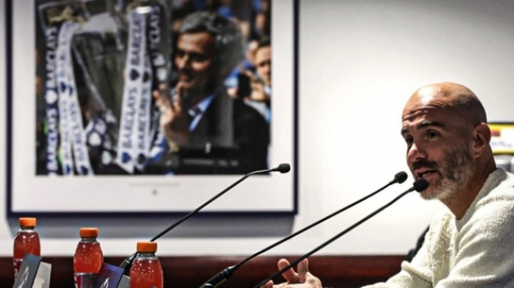 传奇回家!马雷斯卡发布会现场,墙上的照片正是穆帅英超第3冠