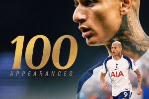 理查利森迎热刺生涯百场里程碑,此前贡献23球11助攻