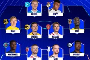 欧冠本周最佳阵容:姆巴佩、霍伊伦入选,邓弗里斯、诺尔高在列