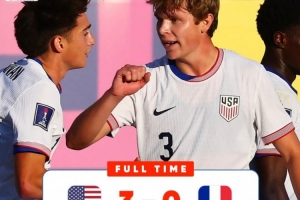 世青赛小组赛美国U20以3-0击败法国U20,取两连胜独占积分榜首
