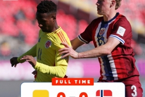 世青赛哥伦比亚U20以0-0战平挪威U20,两队同积4分并列小组第一