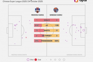 青岛海牛本场的控球率为69%,刷新球队自2012年以来单场中超新高