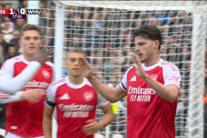 破旧主!赖斯第38分钟破门后选择不庆祝,阿森纳1-0领先西汉姆联