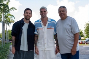 阿根廷足协主席晒与梅西、德保罗合照:很高兴再次见到你们