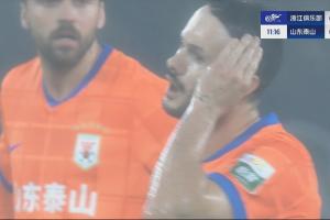 浙江2-2泰山数据:射门13-27,射正5-11,得分机会1-3,角球2-11