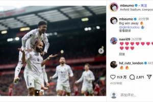 闪击破红军!姆贝莫社媒庆祝胜利:关键的客场胜利