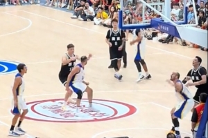 赫罗纳男篮14号防守赵睿频繁下小动作 周鹏挥拳直接将其击倒在地