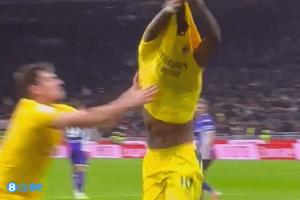 衣领碍事了?莱奥脱衣庆祝被加比亚拦截,随后福法纳帮莱奥立衣领