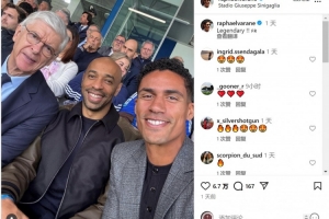 观战科莫vs尤文!瓦拉内社媒晒与温格、亨利合照:传奇