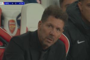 眼神要喷火马竞0-4落后阿森纳,场边西蒙尼表情复杂