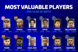 德转各年龄段身价最高球员:梅罗上榜,90后3人上亿,00后5人上亿