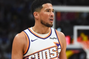 布克半场出战18分钟 8中2&6罚5中拿到10分3板6助 正负值-11