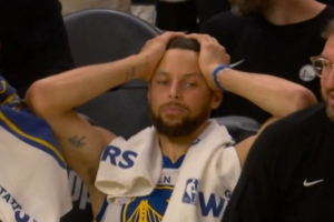 小子偷我技能包?波斯特彩虹三分命中 场下库里双手抱头生无可恋