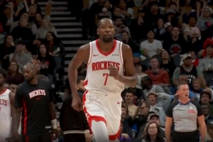 打卡下班咯!亚当斯连续抢到前场板 杜兰特三分一击毙命!