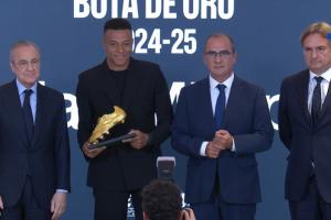 生涯首次获选!姆巴佩领取24-25赛季欧洲金靴,皇马全队到场支持
