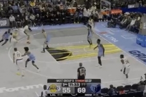 真累了!里夫斯借掩护中路急停中投 离谱三不沾出界...
