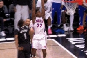 飞天遁地!埃奇库姆中路突破 腾空暴起双手将球砸进篮筐