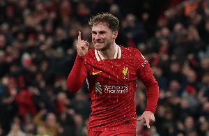 麦卡为利物浦攻入3粒欧冠进球,其中2球来自主场对阵皇马