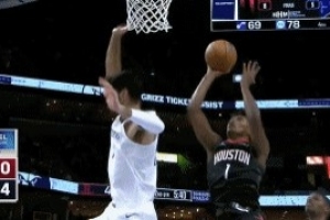 垂直上升!阿门·汤普森反击超长滞空闪过防守上篮打中