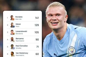 超级射手!哈兰德52场54球坐稳欧冠历史射手第10,C罗梅西前二