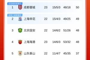 中超最新积分榜:蓉城登顶,申花海港均输球,国安目前大比分落后