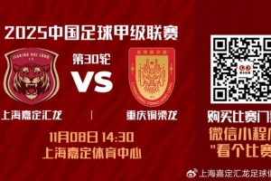 赛事预告|2025中甲联赛第30轮 上海嘉定汇龙对阵重庆铜梁龙