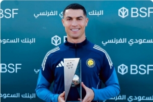 梅开二度助队取胜,C罗赛前领取上轮沙特联最佳进球奖杯