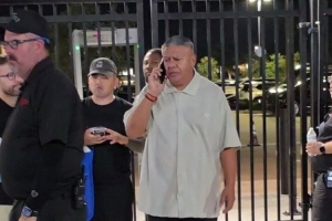 来看梅西!阿根廷足协主席塔皮亚抵达球场,观战迈阿密vs纳什维尔