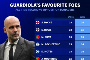 体育资讯11月10日讯 曼城在本轮英超焦点战3-0完胜利物浦,瓜帅也取得了执教生涯对阵斯洛特的首胜。《转会市场》也列出了瓜帅执教生涯对阵教练的胜场最多榜。