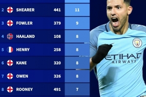 破纪录指日可待?英超帽子戏法榜:阿圭罗12次居首,哈兰德8次