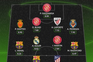 中场/边锋:亚马尔(巴萨)、居莱尔(皇马)、伊万-马丁(赫罗纳)、拉什福德(巴萨)