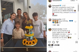 苏亚雷斯社媒晒全家合照为妻子庆生:我们为你感到骄傲,女王!