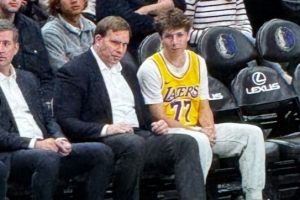 身穿东契奇湖人球衣男孩曾对独行侠老板竖中指 今天又坐其身边