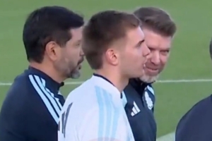 心系国家队!马斯坦托诺来到训练营,观看阿根廷队训练