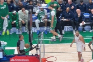 破荒!追梦接巴特勒传球强攻得手 命中个人本场首个运动战进球