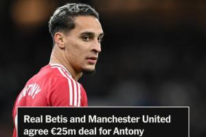 TA:安东尼转会费含300万欧的潜在奖金,二转为未来转会利润的50%
