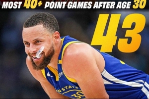 差一场追平乔丹!勇士官方晒图:库里30岁之后第43次砍下40+!
