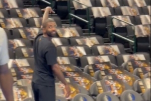 体育资讯11月15日讯 今日独行侠官方晒出视频,欧文在球队训练中精准甩进一记Logo Shot。