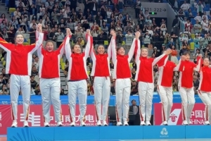 四川全运女篮登上亚军领奖台 韩旭&刘禹彤有爱互动 众人喜笑颜开