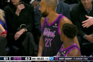 没必要!戈贝尔推倒小哈达威还喋喋不休 被吹一级恶意犯规