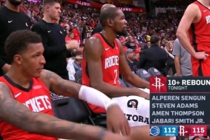 统治篮板球!火箭单场四个球员篮板上双 队史2001年来首次